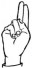 На ћирилици написано АНДРИЈА ДОНЧИЋ састоји се из 13 слова [?]. Исписано ћириличном једноручном азбуком за глувонеме: